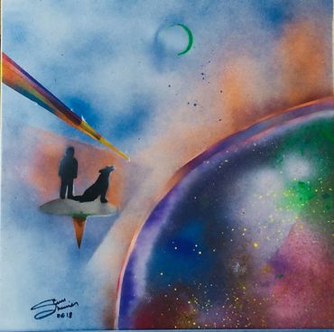 Liquid Acrylic and spray paint on canvas 18x24